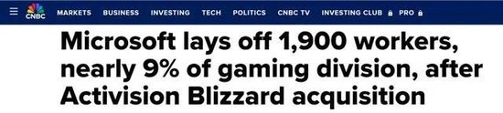 据中国证券报报道,当地时间1月25日,微软对外宣布将对游戏部门进行人员调整。据悉,微软游戏部门将裁员1900人,约为微软游戏部门人员的8%。此次裁员涉及的员工分布在动视暴雪、ZeniMax和Xbox团队,但是以动视暴雪为主。